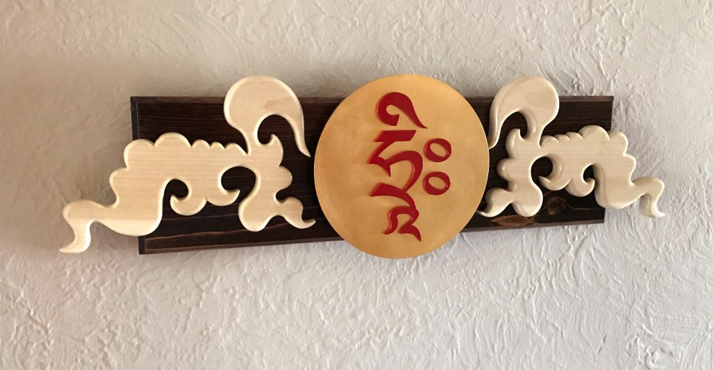 ‘Hri Symbol with Clouds’ -wood, aluminum, paint, 24kt gold leaf