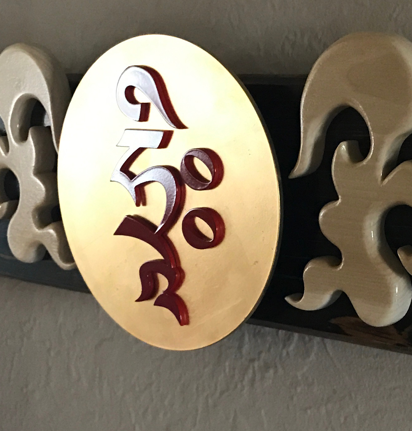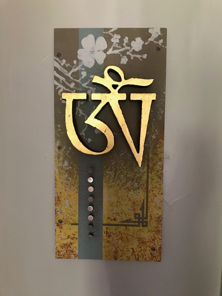 ‘Tibetan Aum Symbol’ -medium density fiberboard, white gold leaf
