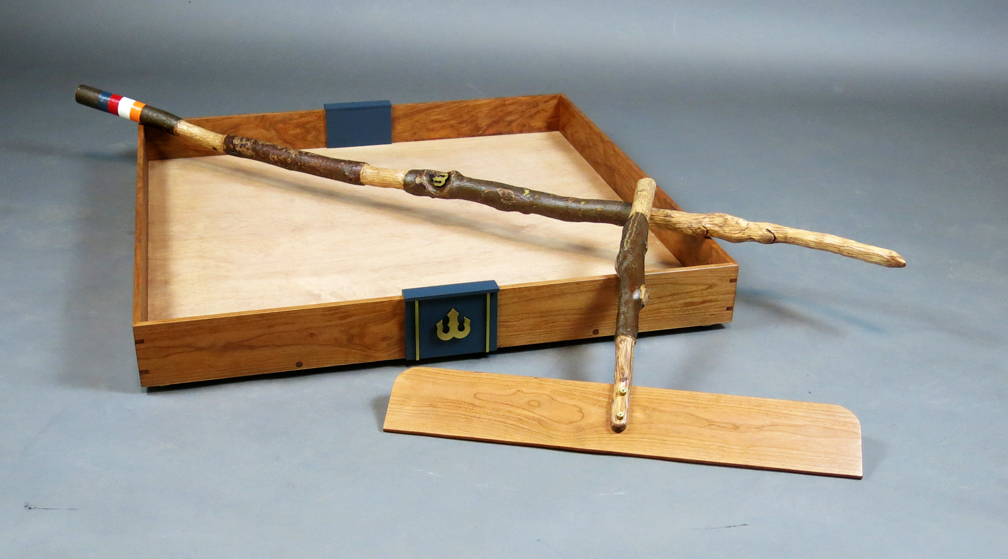 ‘Sand Tray with Staff and Sweep’- wood, paint, aluminum