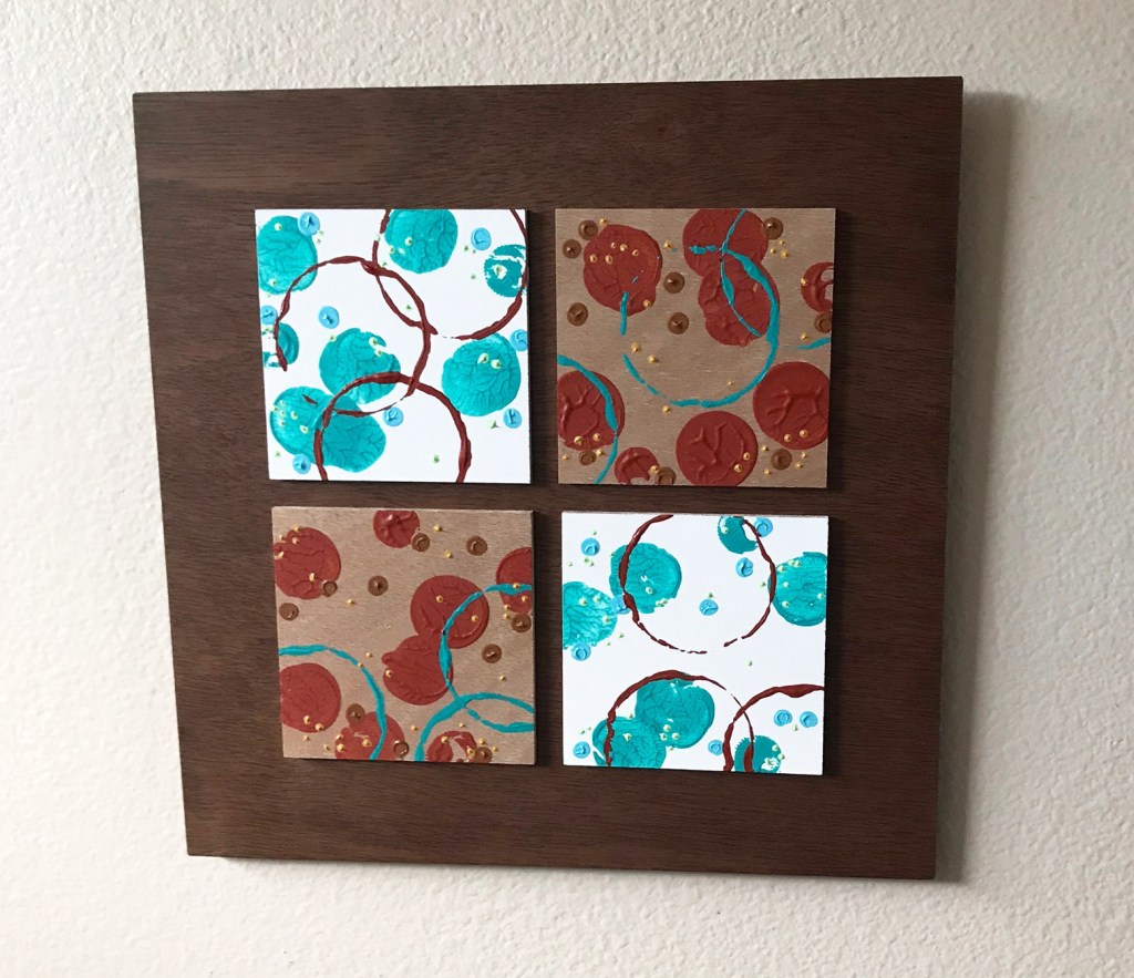 ‘Mono-print Quadriptych tiles’ -acrylic on board tiles on board