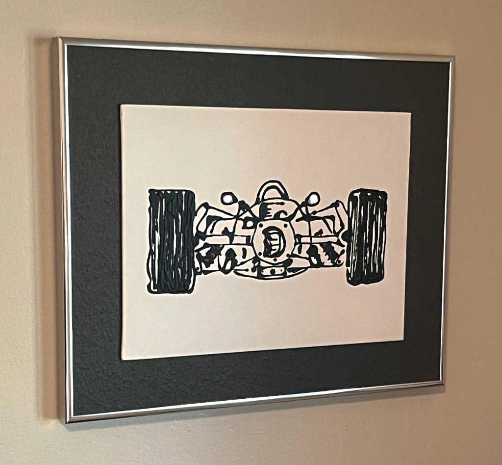 ‘Race Car 1’ -drip acrylic painting on canvas board