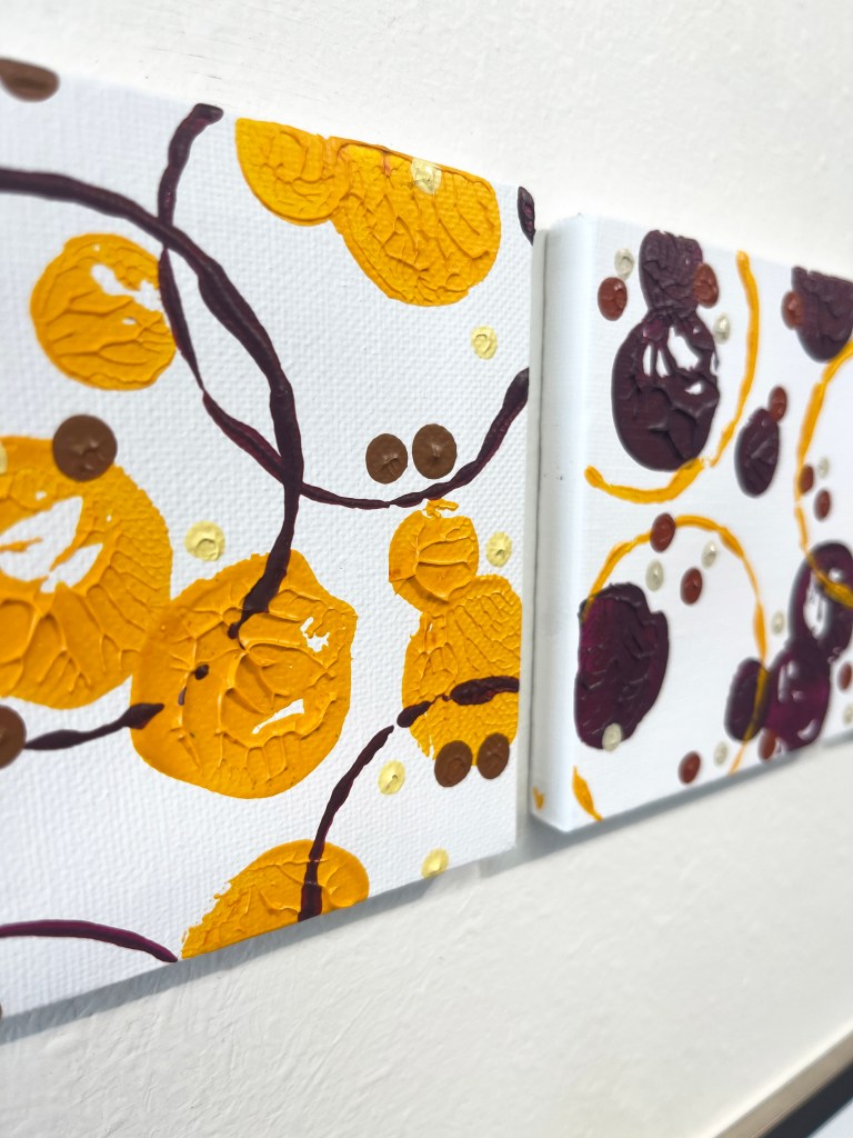 ‘Mono-print Triptych’ -acrylic on stretched canvas on board
